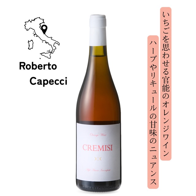 CREMISI 2023は、イタリア マルケ州で生産された夕焼けロゼ色のオレンジワインです。熟成したペコリーノ種とトレッビアーノ種を使用し、薬草、いちご、ショートケーキのアロマが広がります。フルーツそのままのジューシーな味わいを感じさせ、他のワインでは味わったことのないキュートでチャーミングな飲み口となっています。 このCREMISI Vino Orange 2022は、夏の食卓や女子会、記念日のお祝いなど幅広いシーンで活躍し、鮮やかな美しい時間を演出します。 心躍る一口を、CREMISI Vino Orange 2022でお楽しみください。 この一本が、あなたの心に幸せな余韻を残し、特別な瞬間をさらに輝かせることでしょう。 ※未成年者の飲酒は法律で禁止されています。お酒は適量を守って楽しみましょう。